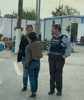 Image Description Chatting with Mayaha -a Êzidi young woman from Iraq- and Mina -a Greek camp guard-, Serres, Novembre 2023 Project Exile songs in Greece